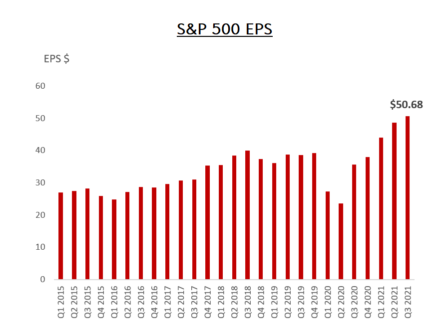 Earnings for S&P have touched the highest number since 2015 due to pent-up demand, more money in hands of people. Normalized growth in earnings has already been priced in P/E which is higher than 10 yr historic average which means till companies do not report earnings that are already priced in the markets we may not see upside in the index due to stretched valuations.